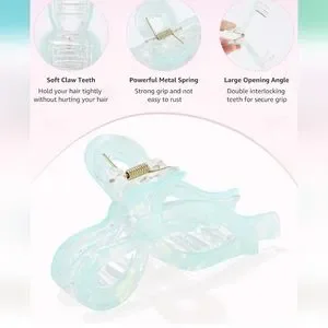 Enhance your style with this elegant light blue/ mint green iridescent hair claw clips. Perfect for any occasion, these clips add a touch of sophistication to your look.