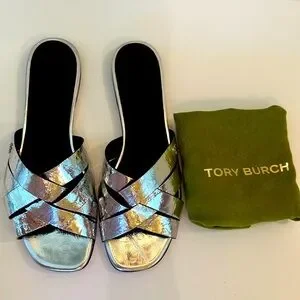 NewTory Burch Metallic Silver Slide Sandals. Size 8.5M.