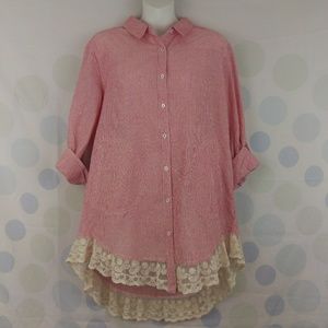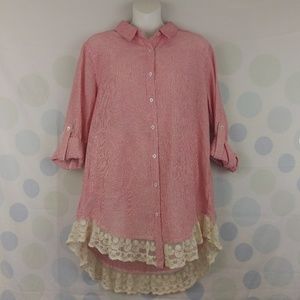 Umgee Country Striped Lace Trim Pockets Tunic