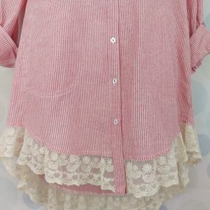 Red and White Striped with lace trim