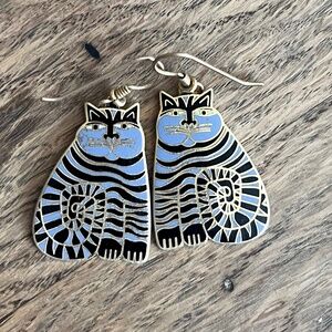 Laurel Burch “Shambala Cat” Earrings – Black & Gray Enamel Dangle Earrings