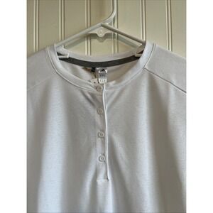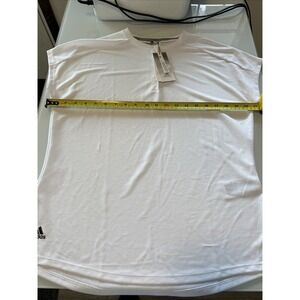 The product is a women's size large Adidas short sleeve crew top in white, designed for essential activewear. Specifically tailored for golf, this top provides comfort and style for athletic activities. With the Adidas brand, you can be assured of quality and performance, making it a great addition to your activewear collection.