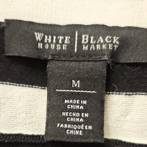 Stylish tank top with bold black and white design. Perfect for any occasion. Crafted by White House Black Market. Exceptionally great condition. Easy wear, easy care. Has satin straps for hanging.