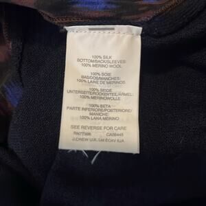 J Crew size S silk and merino wool animal print long sleeve scoop neck top. Patterned front is 100% silk, balance of garment 100% soft lightweight merino wool.