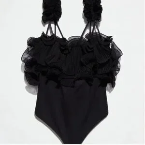 JOIE Ruffle Strappy Black Bodysuit