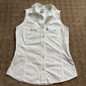 Carhartt Pearl Snap Vest Shirts Women's Small White Sleeveless Western Cowgirl