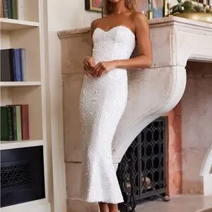 This elegant white strapless dress is perfect for any special occasion. Its sleek design and classic color make it a timeless addition to your wardrobe.