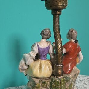 Antique Victorian Porcelain Lamp Courting Couple Sheep Grapes Boudoir Brass
