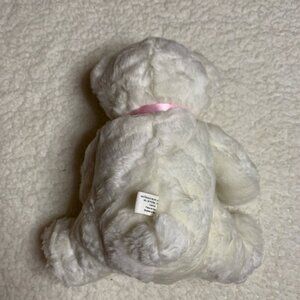 This beautiful soft white Breast Cancer Awareness Bear from 2002 has the year on one paw and the awareness ribbon on another. Bear also has a pink bow around it’s neck. Bear remains in great condition.