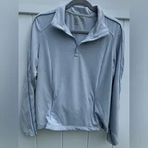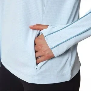 Mondetta Women’s Sky Blue Lightweight Quarter Zip Pullover Shirt With Built in Thumbholes, Zippered Pockets On Either Side Which Creates A Kangaroo Pocket. Size Large. NWOT. 100% Recycled Polyester. Perfect For A Day Of Hiking Or A Workout.