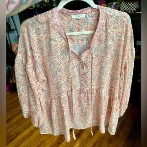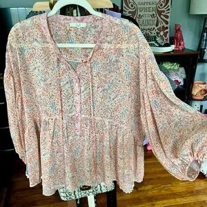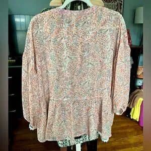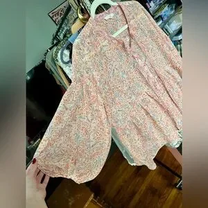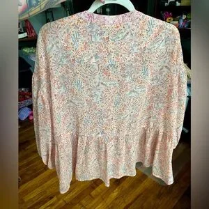 Easel Flowy Floral Blouse Pink and Peachy Orange Small Fits Bigger