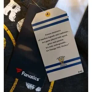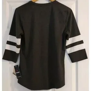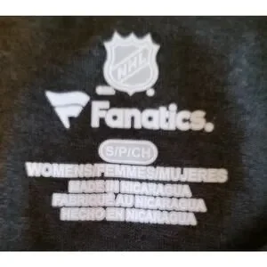 This Women's Boston Bruins shirt by Fanatics is officially licensed by the National Hockey League (NHL). It features the team logo and colors in a stylish gray design, perfect for female fans of the Boston Bruins. The round neck and size small make it a comfortable and flattering fit for any hockey enthusiast looking to show their team pride.