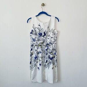 NWT Talbots Butterfly Spring Sateen Sheath Dress Cerulean Yellow White Size 4 P