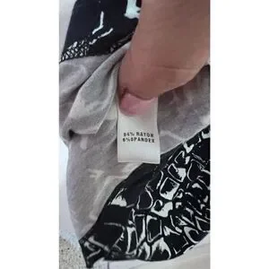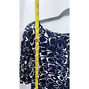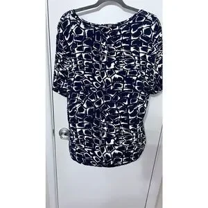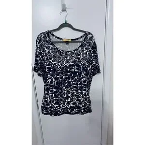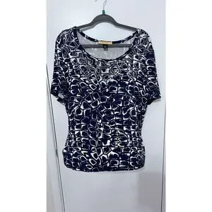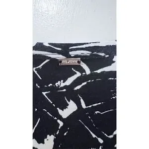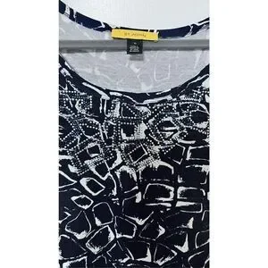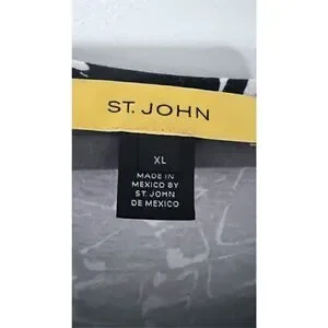 ST. JOHN PRINTED SCOOP NECK BLACK PRINT RHINESTONE NECKLINE TOP SZ XL