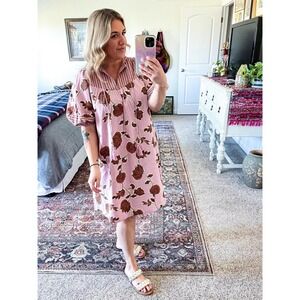 NWT Knox Rose A-line Floral Print Mini Dress Pink Bohemian Tunic Dress S