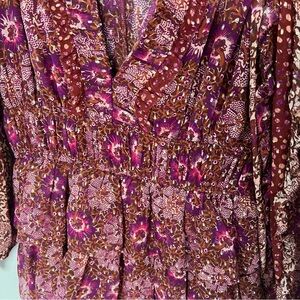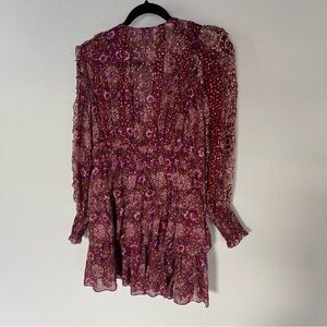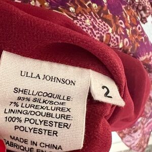 ULLA JOHNSON Brisa Printed Ruffle Mini Dress Claret Patchwork Silk Boho Women 2