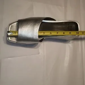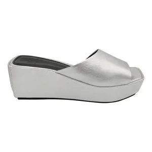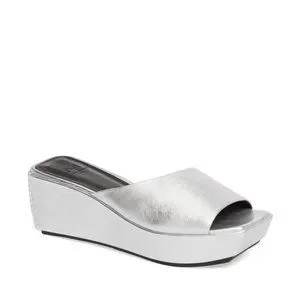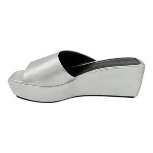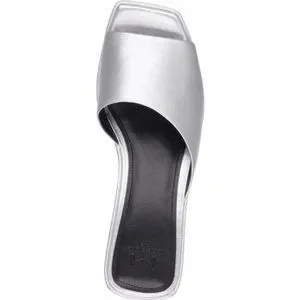Marc Fisher New YAILYN Platform Slide Sandal Mule Leather Flatforms SILVER Women