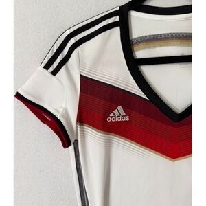 Adidas Shirt Deutscher Fussball-Bund Soccer Climacool Women Medium White V Neck