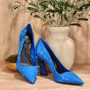 Gianni Bini Women's Self-Made Daisy Satin Blue Closed Toe Pumps Size 8.5