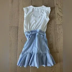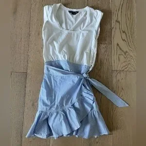 Elegant white and blue mini dress with a simple design. Perfect for versatile styling. Beautiful style, very flattering. Worn once. Like new condition.