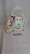 Features colorful polka dots on a white base. Stylish and fun. Comes with dust bag.