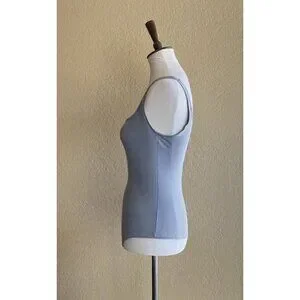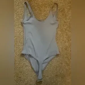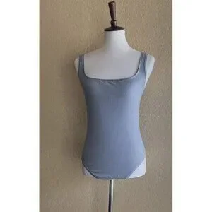 Elegant light blue bodysuit. Square neckline. Sleeveless design. Perfect for layering.