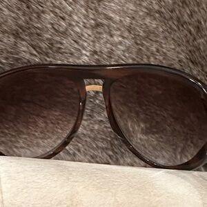 Elegant Tom Ford sunglasses with gradient lenses. Features a chic black and brown frame. Ideal for a sophisticated style.