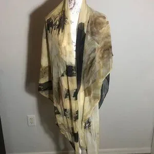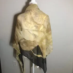legant & timeless, this Gottex sheer silk scarf & wrap elevates any look. Featuring oversized floral blooms in golden beige, cream & black, it drapes gracefully and can be styled multiple ways: as a neck scarf, lightweight wrap, or chic evening shawl.