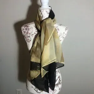 Gottex Sheer Floral Silk Scarf Wrap – Neutral Gold & Black