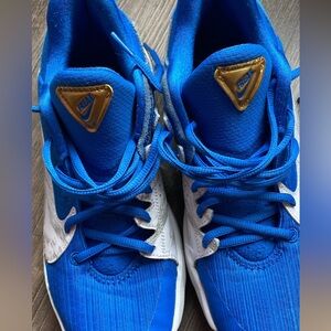 These stylish Big Boy’s ' athletic shoes feature a vibrant blue and white design, perfect for active play. Comfortable and durable, they are ideal for everyday wear.