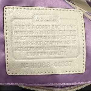 COACH 44837 Julia Outline OP Art Lilac Purple Sateen Pouch Small Purse Shoulder Handbag. Pre-owned in great condition! Only flaw is the FAINT PEN MARK as shown. Inner lining is clean with no issues. Zoom in photos for details, flaws and measurements. You will get exactly as pictured!