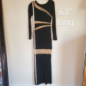 Peekaboo Dress! ABS Allen Schwartz Illusion Inset Maxi Long Black peek a boo
