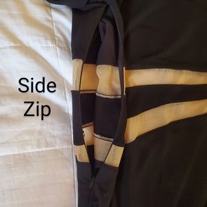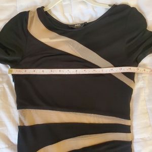 Black stretch jersey with beige semi sheer illusion mesh insets