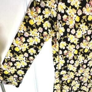 Downeast Women Yellow Floral 3/4 Sleeve Stretchy Fit Flare Swing Midi Dress Sz M