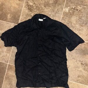Classic black short sleeve button-up shirt. Perfect for casual wear. Detailing in front and on sleeve that is hard to see in the photos. Looks much nicer in person.