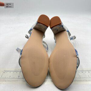 XYD Blue Floral Open Toe Low Heel Block Sandals Buckled Ankle Strap Shoes