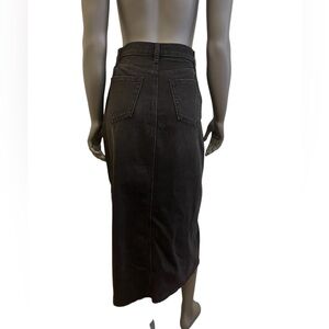 Altar’d State Jeans Skirt Sz S Front Slit Midi Whiskered High Waisted Frayed Hem