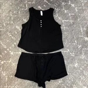 Comfortable black tank and shorts. Perfect for lounging.