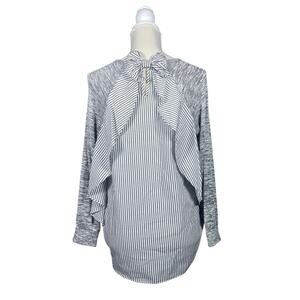 Soprano Top Girls Large Gray/White Heathered LS Striped Ruffled Dressy Casual