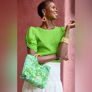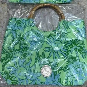 NIP Lilly Pulitzer Cool Mint Catchin Rays bamboo handle purse