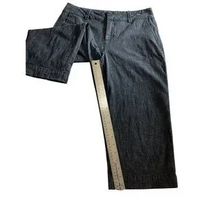 These Coldwater Creek capri pants offer a versatile style for casual settings. Their denim fabric provides comfort and durability, while the cropped design is ideal for warmer weather. The pants include practical pockets and a belt loop waistband, enhancing functionality. A great addition to a relaxed wardrobe.