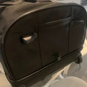 Excellent gently used condition. This Briggs & Riley large duffle suitcase will fill all of your travel needs. Excellent durable quality and space saver feature allows it to flatten if needed. Double layered. One layer allows for flat positioning of clothing to ensure wrinkle free garments. TSA approved lock included. Exterior dimensions 29x18x16.5 in