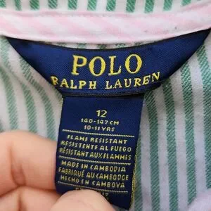 Shirt: multicolored signature embroidered Pony at the left chest; notch lapels; buttoned placket; short sleeves; left chest patch pocket.