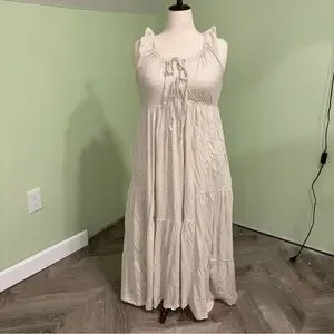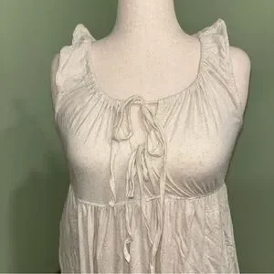 FP Beach Tie Front Sleeveless Tiered Maxi Dress Cream Boho Cottage Women’s Sz M