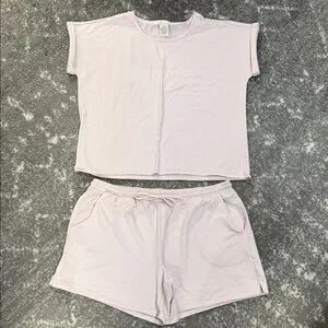 Light pink top and shorts. Soft fabric. Ideal for relaxation.
