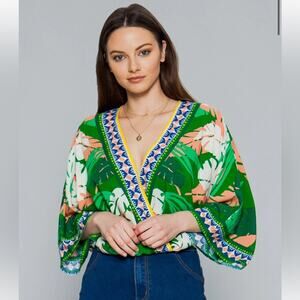 Flying Tomato Free Market Palm Dreams Leaf Print Kimono Top