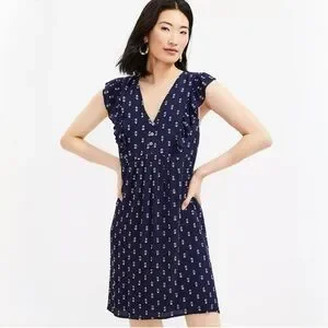 LOFT Navy Blue Ruffle Sleeve Dress