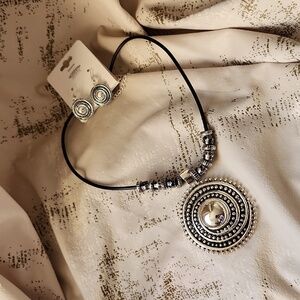 Traditional Beautiful Oxidized Silver Leather Strap Necklace