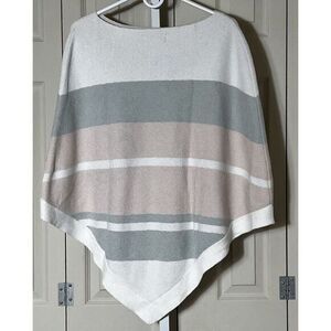BAREFOOT DREAMS Cozychic UltraLite Knit Poncho White Pink Green Strip One Size