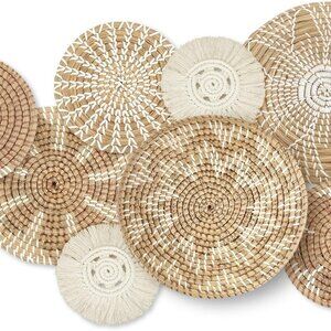 Set of 8 Hanging Woven Wall Basket Handmade Decorative Rustic Boho Basket Decor